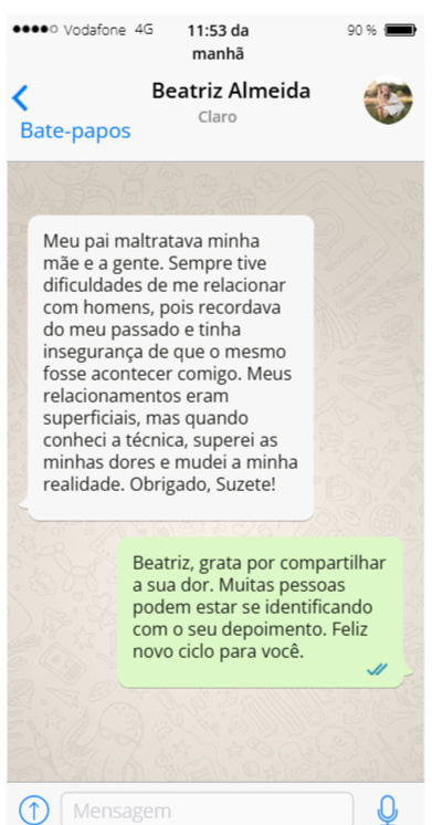 Uma das transformações mais extraordinárias que pude perceber, foi o resgate da minha autoconfiança e do meu amor próprio. Eu sou grata por ter encontrado o poder dentro de mim para superar e compartilhar minha história com outros que precisam de esperança, liberdade e inspiração!